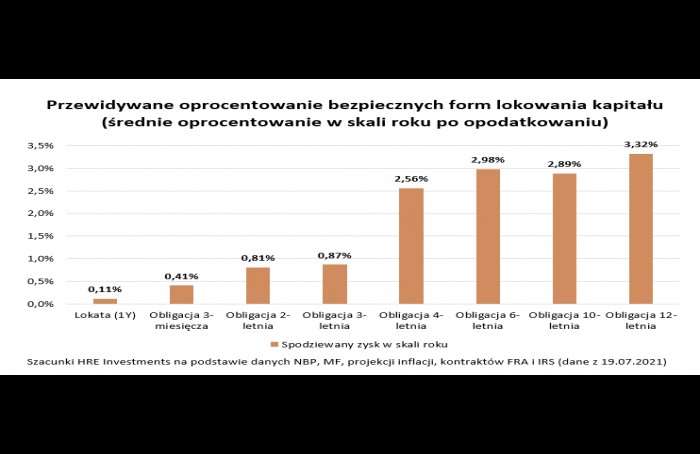 Nie jest to mechanizm idealny. Co prawda obligacje indeksowane dają szansę na utrzymanie siły nabywczej kapitału, ale tylko jeśli inflacja nie okaże się zbyt wysoka. W zależności od tego które papiery wybierzemy lub które będziemy mogli kupić, to potrafią one chronić przed inflacją na poziomie od 2 do maksymalnie 5 proc.. Gdy inflacja przyspiesza, to niestety naszą dodatkową marżę zysku konsumuje podatek od odsetek, który jest nieodłącznym elementem inwestowania w obligacje skarbowe. Nie zmienia to jednak faktu, że wiele osób straciło dziś wiarę w niemal nieoprocentowane lokaty i wybierają w ich miejsce detaliczne papiery skarbowe, fundusze inwestycyjne czy nieruchomości.
